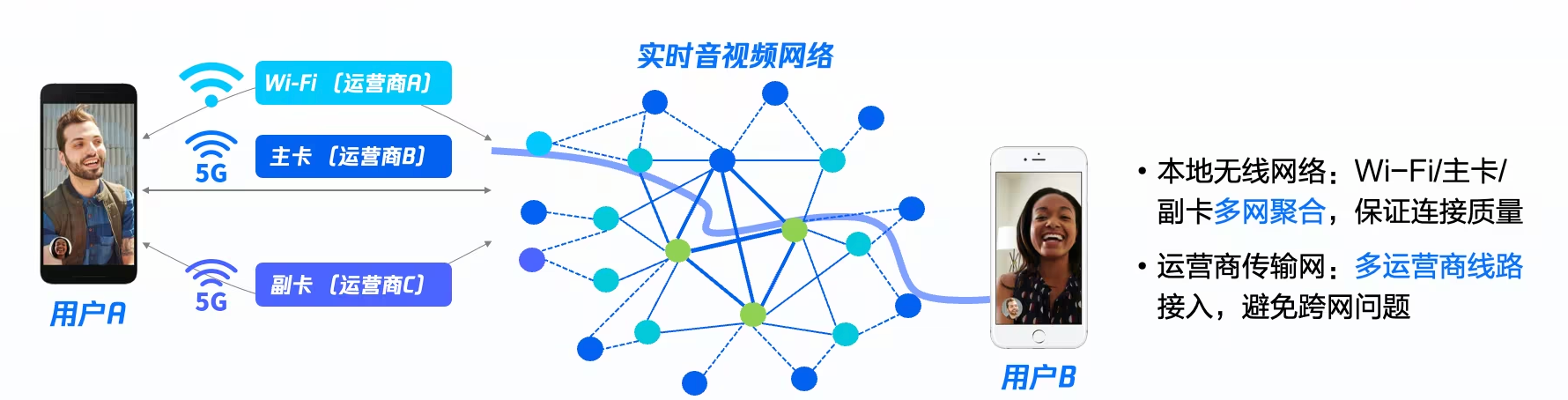 动态加速:在通话过程中,系统持续监测网络质量。在检测到网络不佳、存在潜在卡顿风险时,自动启动多网聚合加速能力。