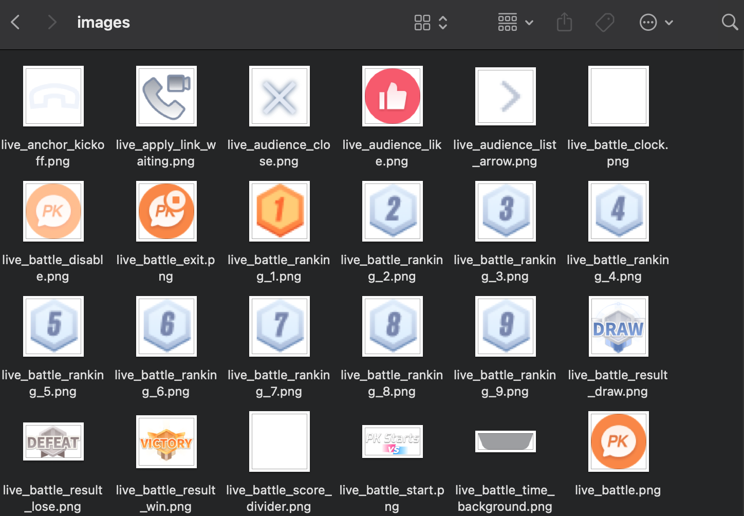 livekit/assets/images/ 目录下管理,您可以直接替换该目录下的 PNG 图片文件来快速修改自定义界面所需的图标。