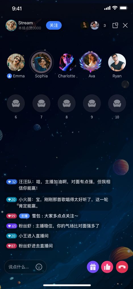 观众互动: 支持弹幕、礼物、点赞等丰富的直播互动形式。