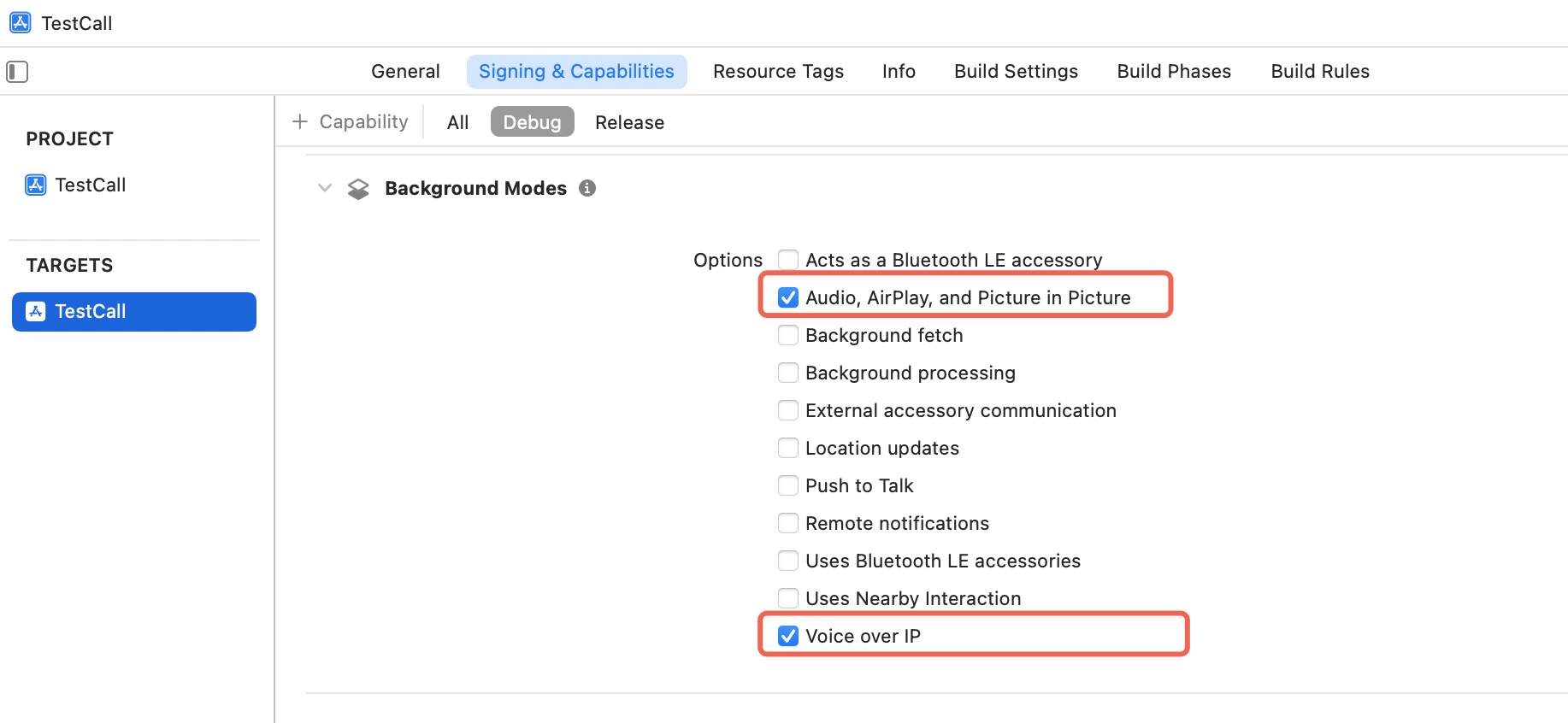 com.apple.developer.avfoundation.multitasking-camera-access entitlement。iOS 18 及以上系统:确保在 Background Modes 中勾选了 Voice over IP。