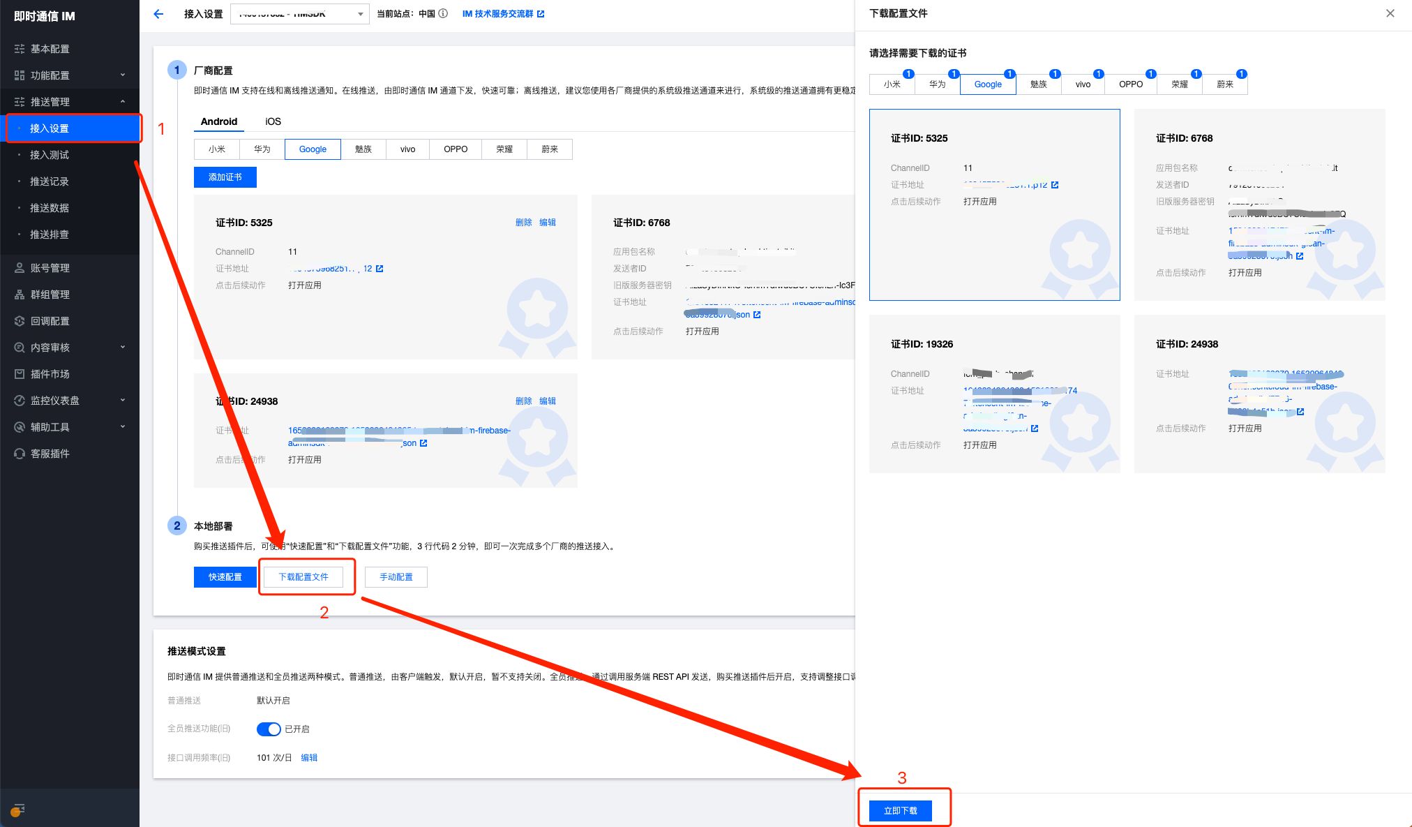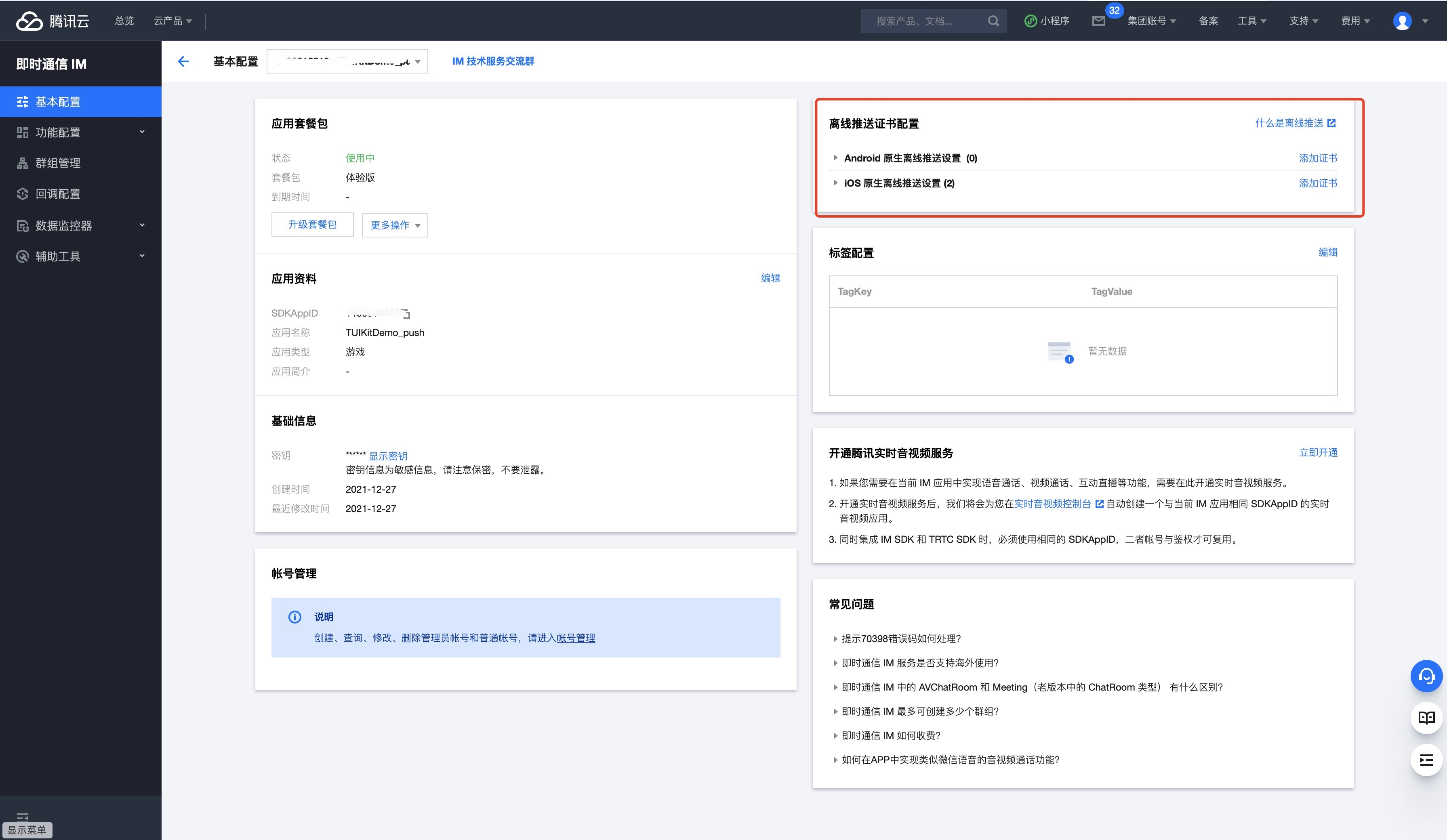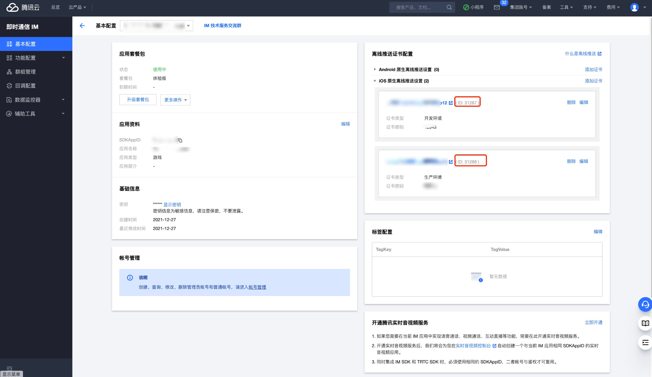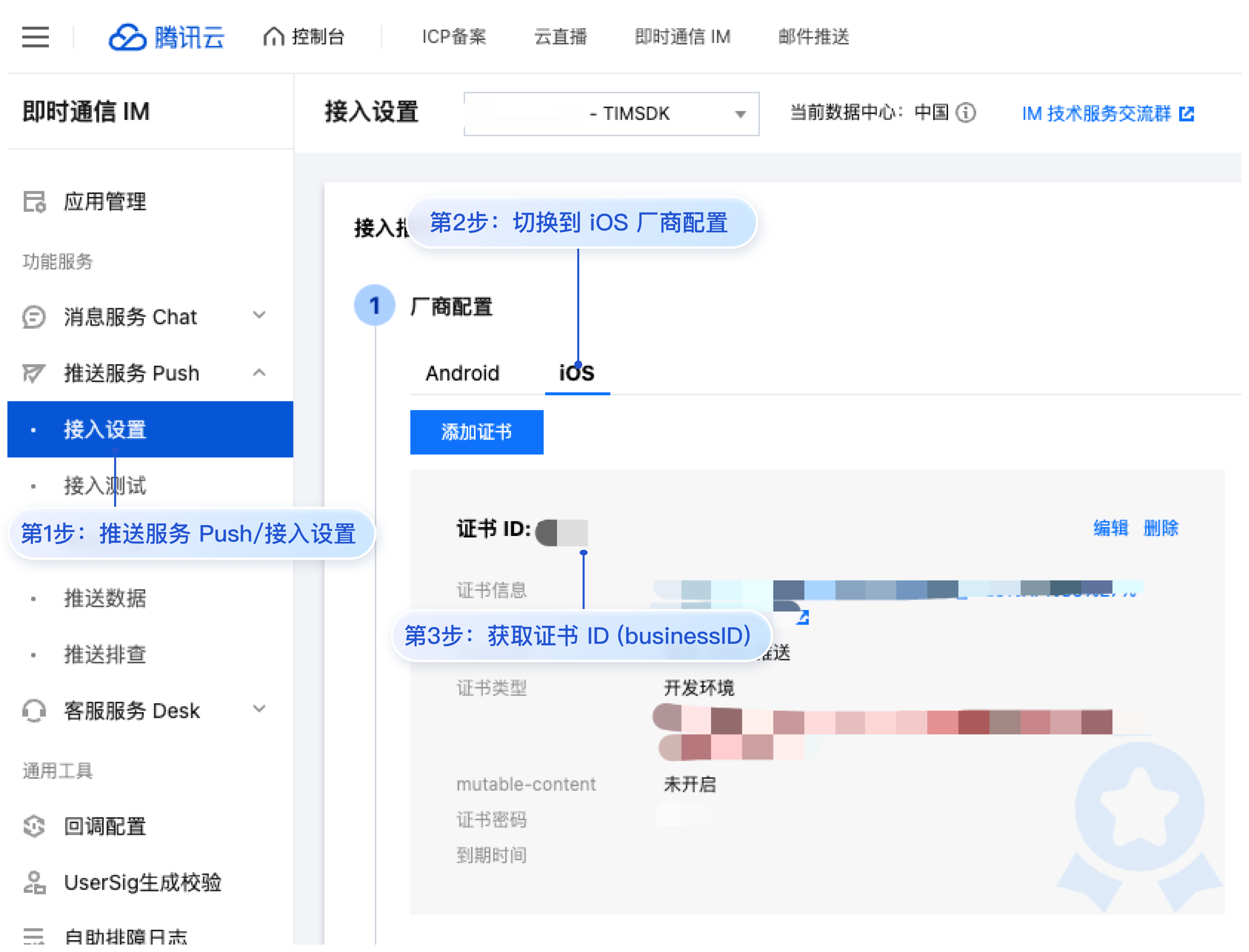 IM 控制台会为您分配一个证书 ID,见下图: