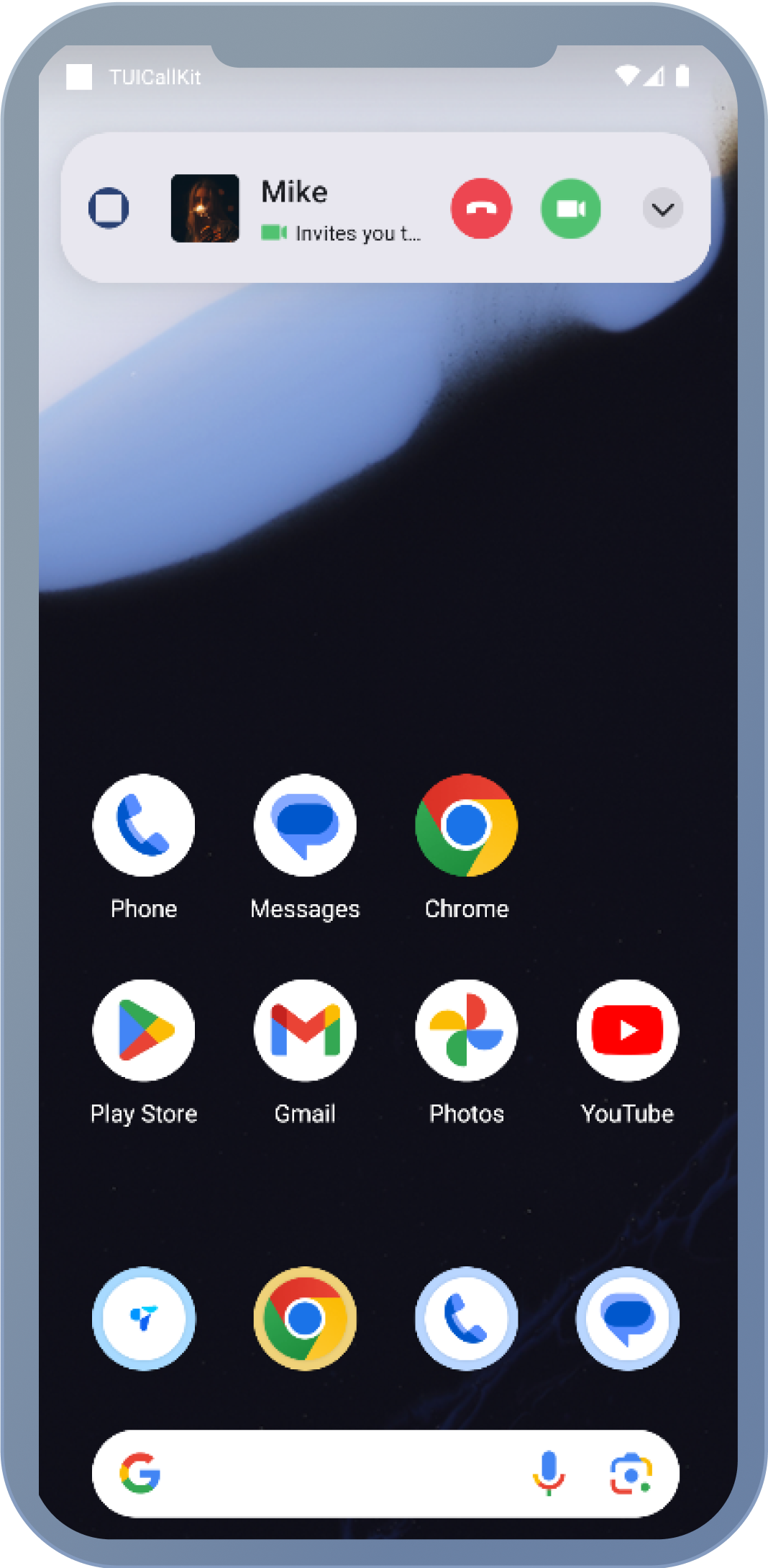 2. 展示来电通知:当收到 onCallReceived 事件后,根据该事件携带的通话信息展示通知界面。在 onCallReceived 回调中,根据事件携带的通话信息,并调用自定义的推送通知(参考步骤 2)进行展示。