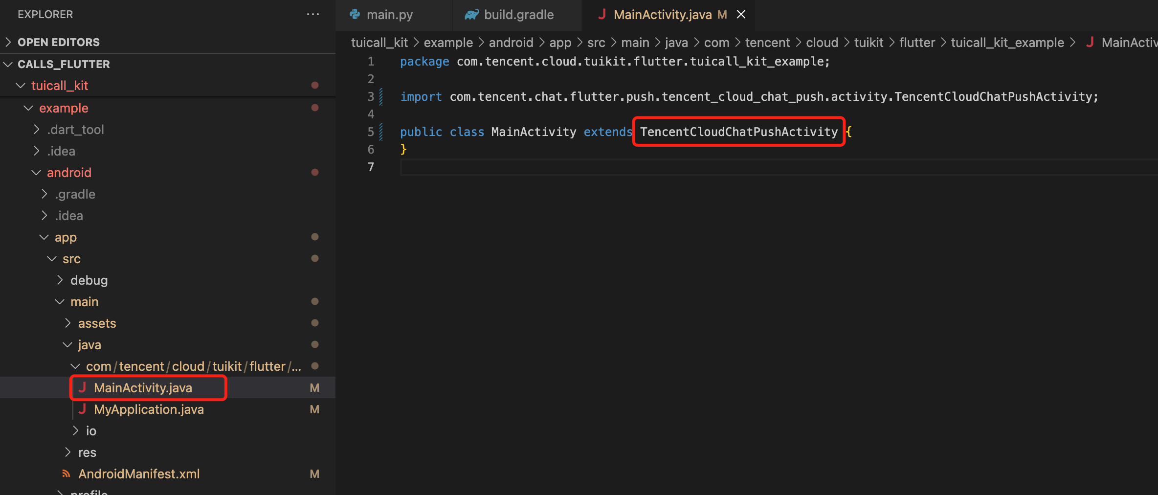 extends TencentCloudChatPushApplication 并保证 onCreate() 函数中,调用了 super.onCreate(); 即可。同时,您还需要修改您的 MainActivity 文件: