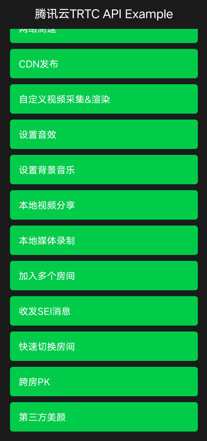 4. 点击运行按钮开始编译。编译成功后,你的设备上会自动安装好腾讯云 TRTC-API-Example App。