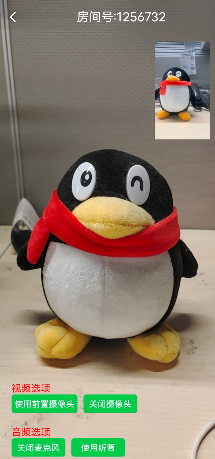 2. 进入房间后,可以切换摄像头、开启/关闭摄像头、开启/关闭麦克风,如下图所示: