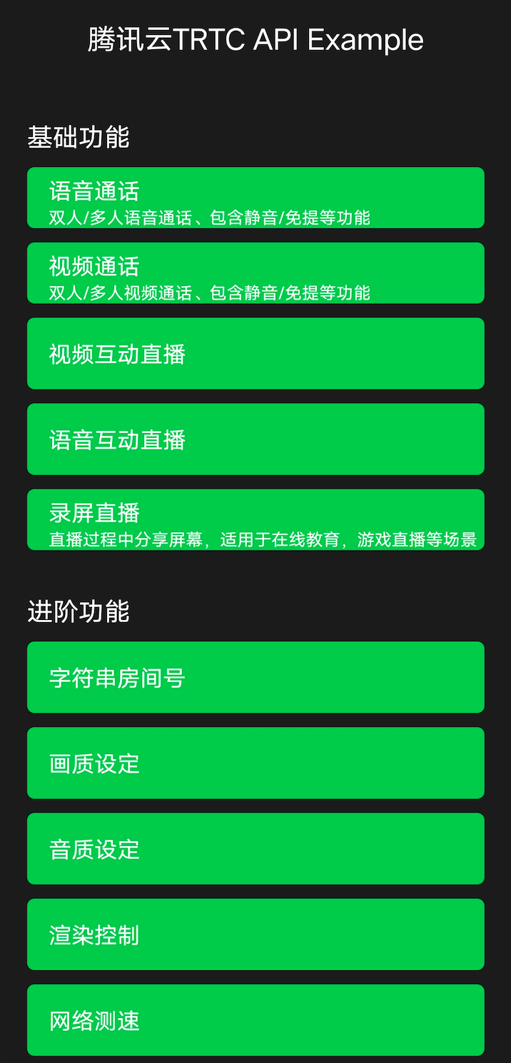 Objective-C 项目,进入 TRTC_iOS/TRTC-API-Example-OC 文件夹,打开 TRTC-API-Example-OC.xcworkspace 编译运行。