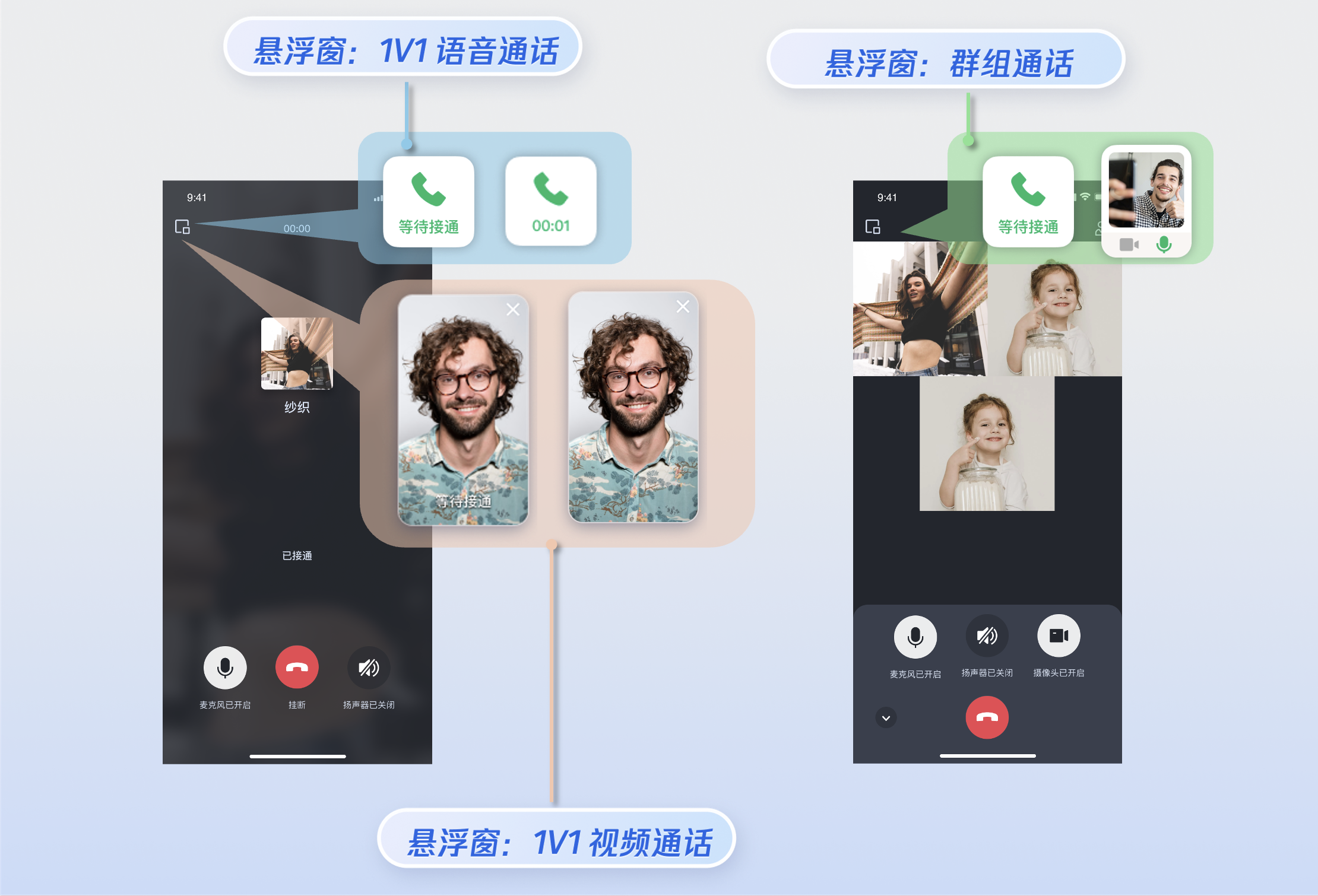 用户在通话过程中需要切换到应用内其他页面进行多任务操作时,您可开启悬浮窗功能。