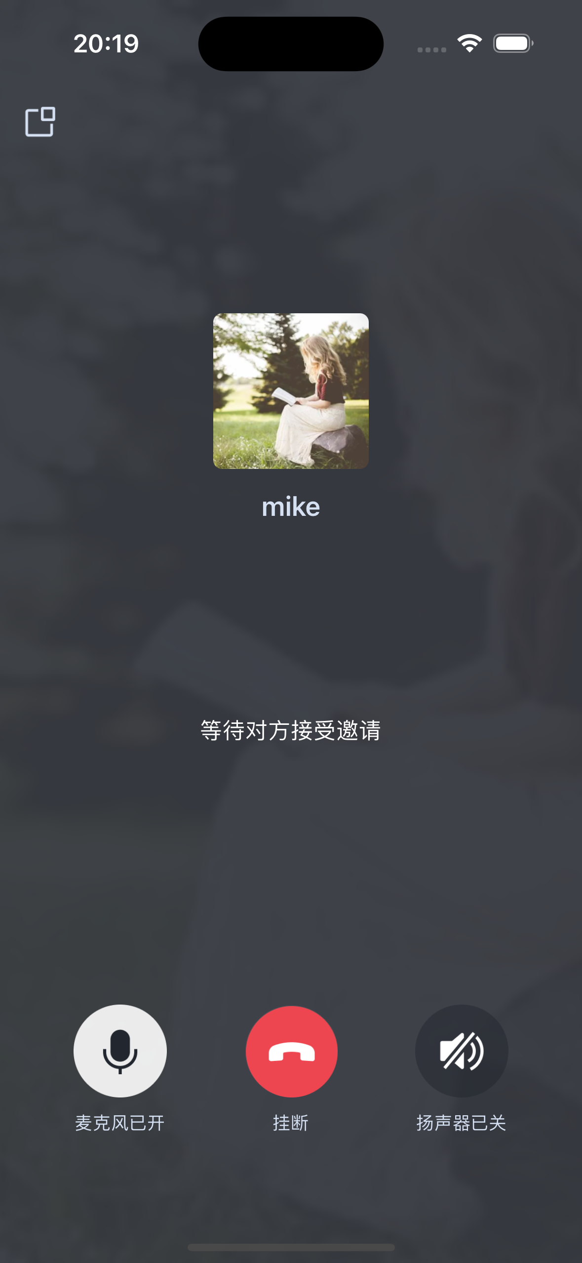 3. 运行项目后,在“发起通话”和“收到通话请求”时,可以看到如下显示效果。
