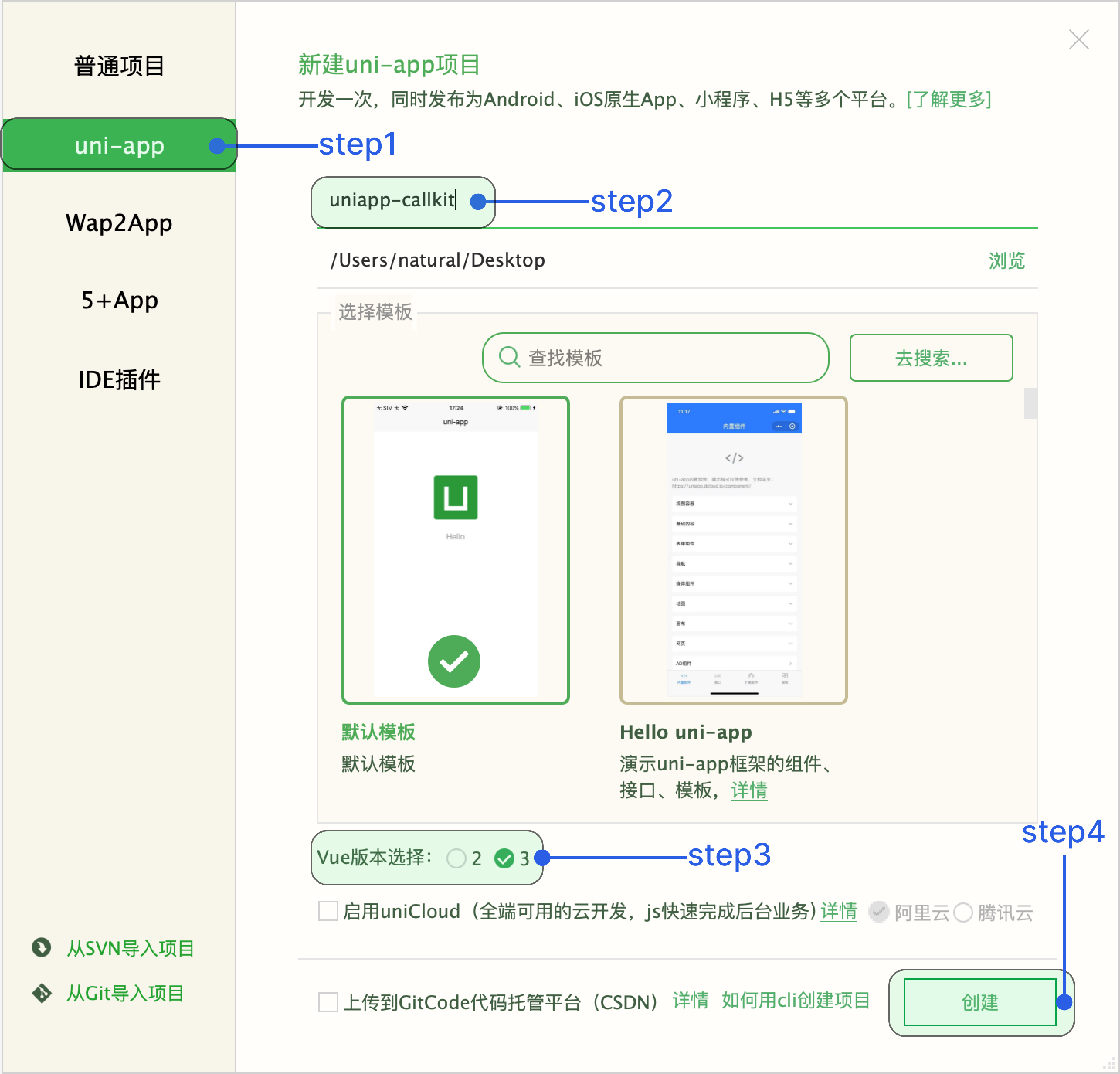npx degit dcloudio/uni-preset-vue#vite chat-example