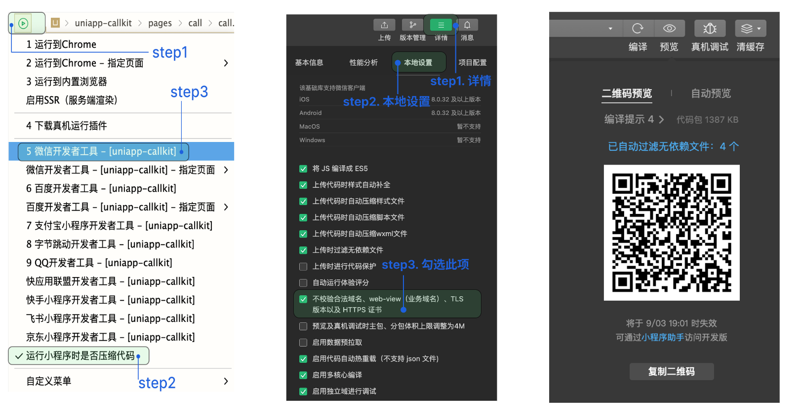 1. 以编译开发模式的微信小程序为例(编译至其他平台请参考 package.json 文件中 scripts 脚本配置):