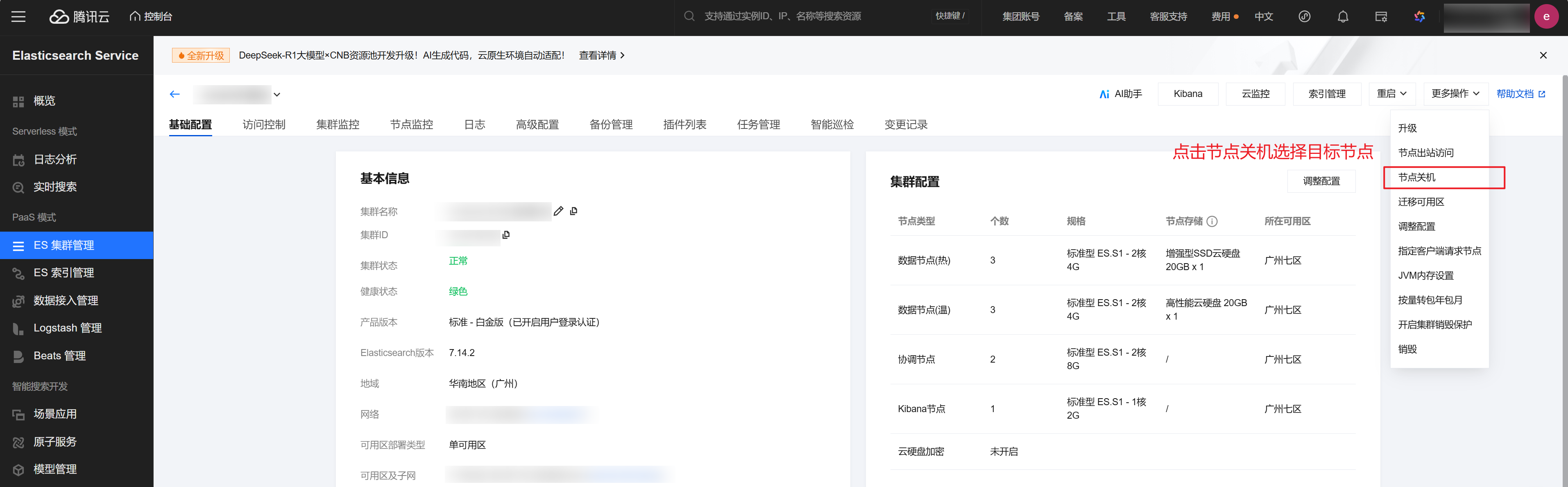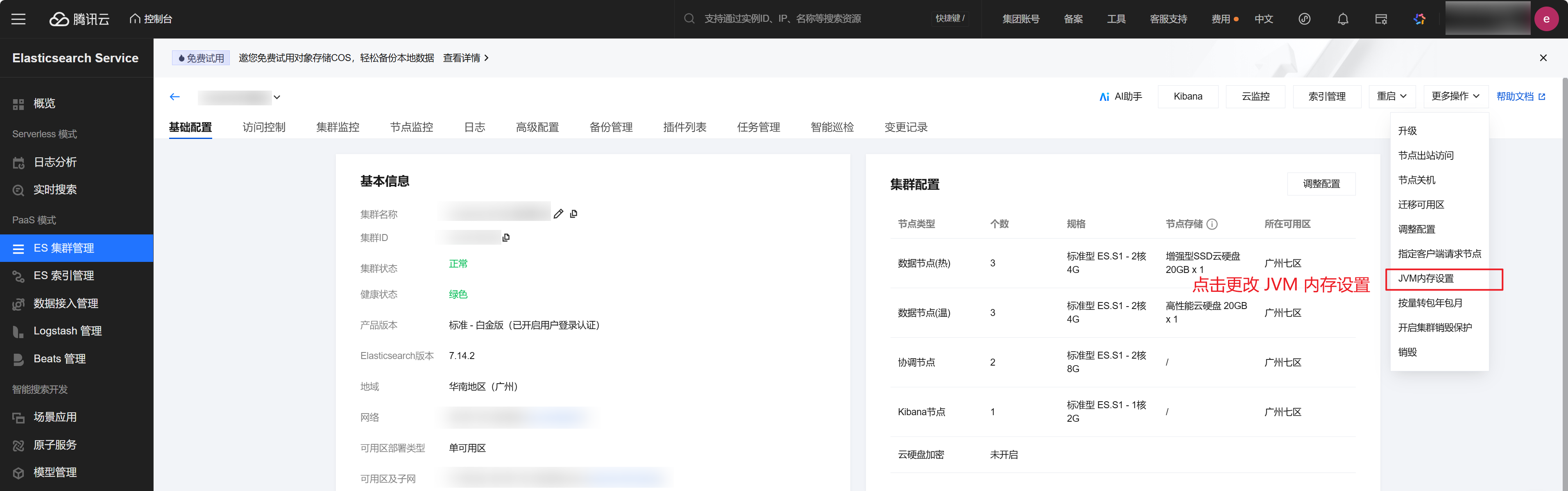 腾讯云 ES 为用户提供了管理节点功能,用户可以指定节点对其执行重启、开关机、设置出站访问、配置 JVM 内存等操作。