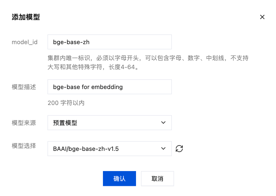 PUT _inference/text_embedding/bge-base-zh-service{"service": "elasticsearch","service_settings": {"model_id": "bge-base-zh","num_allocations": 1,"num_threads": 1}}