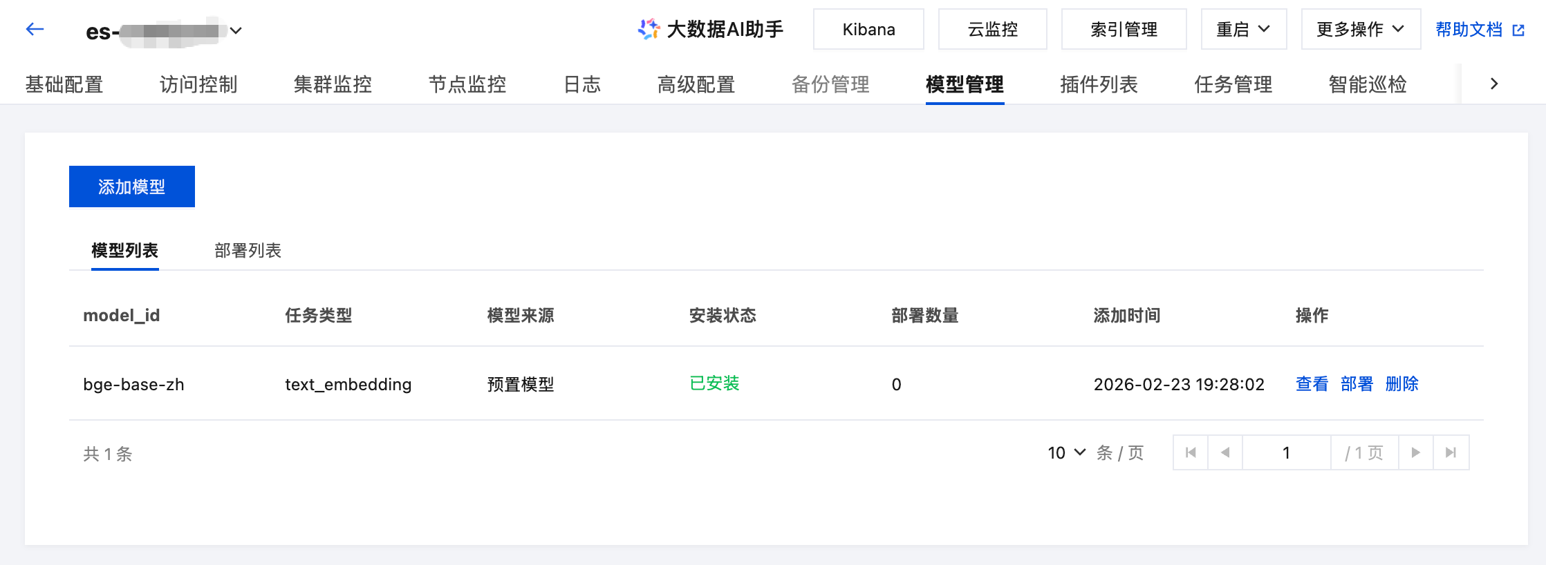 进入集群详情页,切换到“模型管理”: