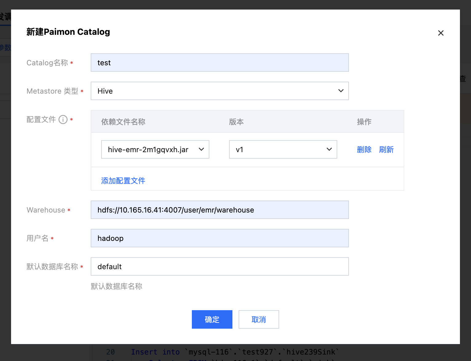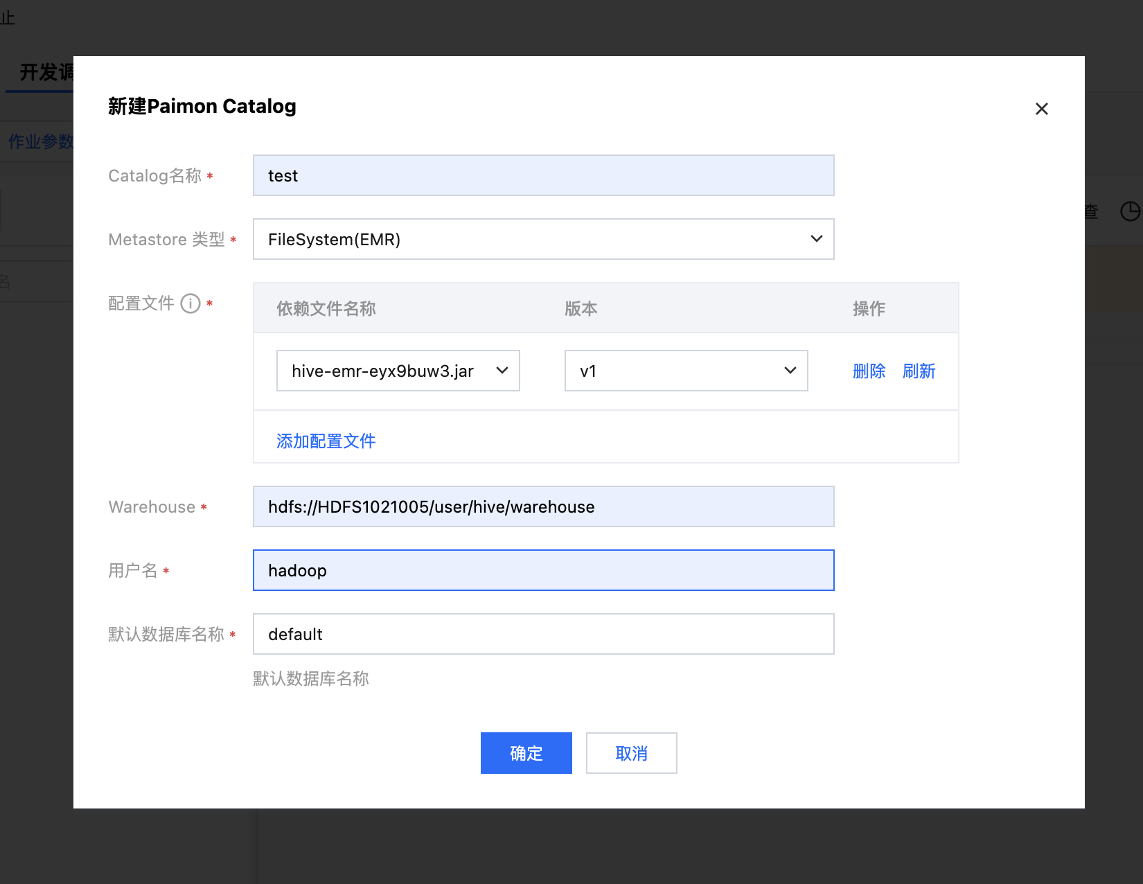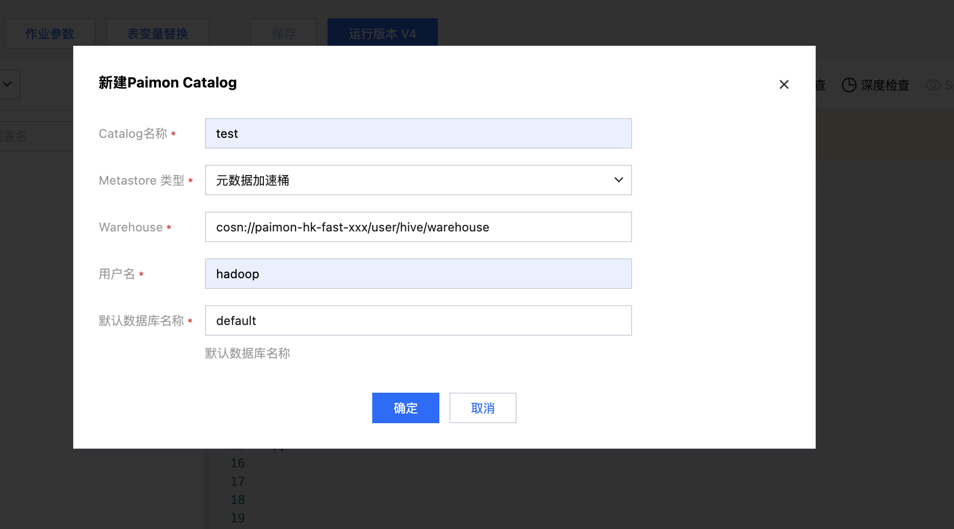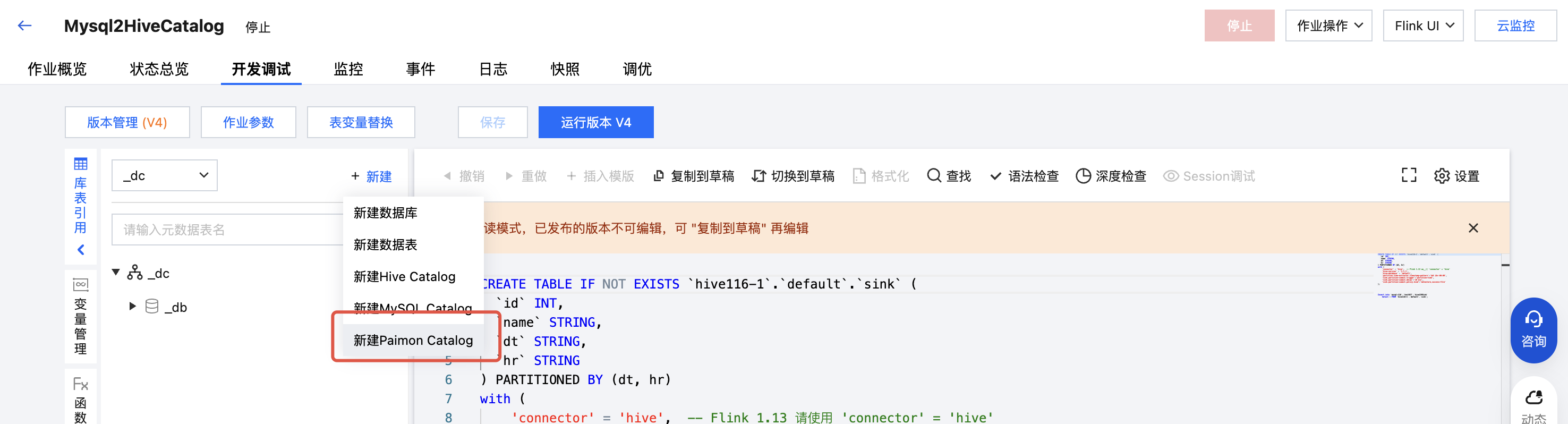 _dc,单击新建Paimon Catalog。