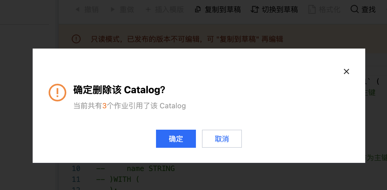 删除之后,关联该 Catalog 的作业会出现启动失败。