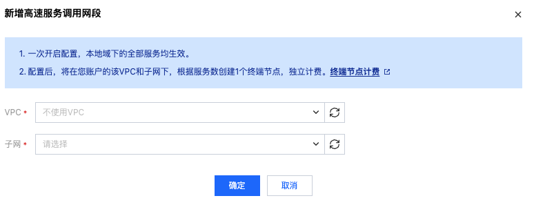 注意:常规服务调用地址由于调用链路耗时可能受到 WAF 防火墙等影响产生波动,建议您使用高速服务调用地址来压测服务性能。即将 HOST 配置成高速服务调用地址。您可将开发机实例所在的 VPC 网络新增到在线服务的高速服务调用网段,操作说明如下示例。
