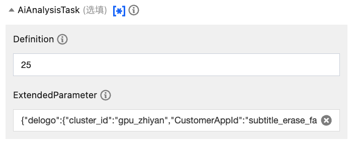 使用去字幕(自动擦除)能力,ExtendedParameter 基础传参如下: