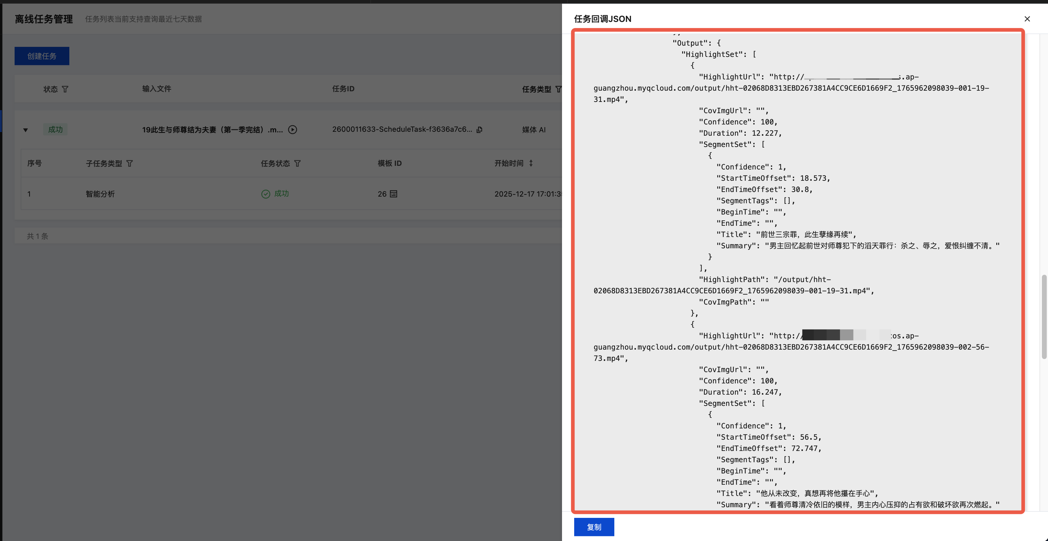 控制台发起任务需要使用预设模板(预设精彩集锦参数)。由于集锦存在一些特殊参数无法在模板中配置,可能会影响精彩集锦的效果,因此更推荐您使用 API 的方式接入。