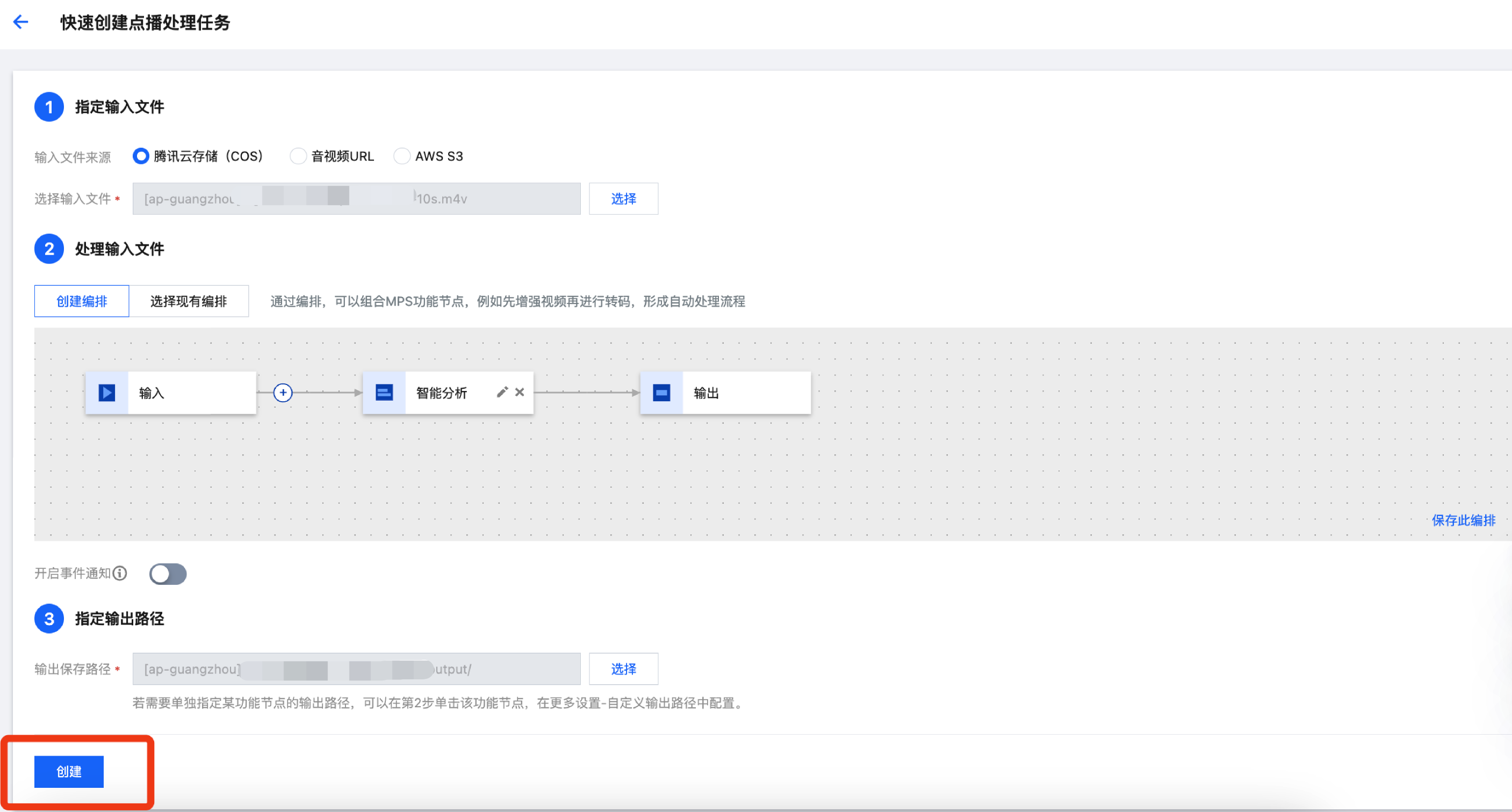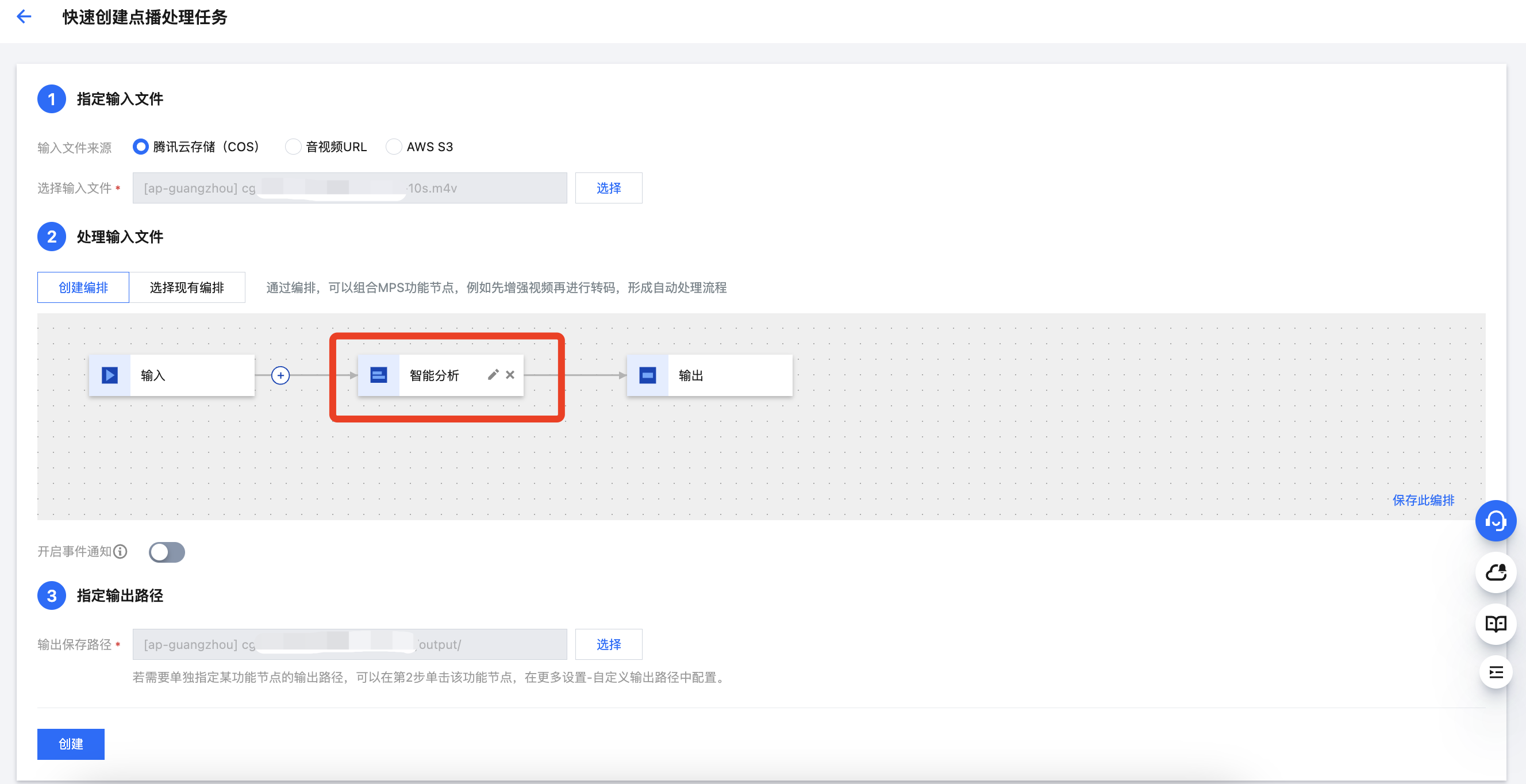 4. 最后,指定输出视频保存路径后,即可单击创建发起任务。