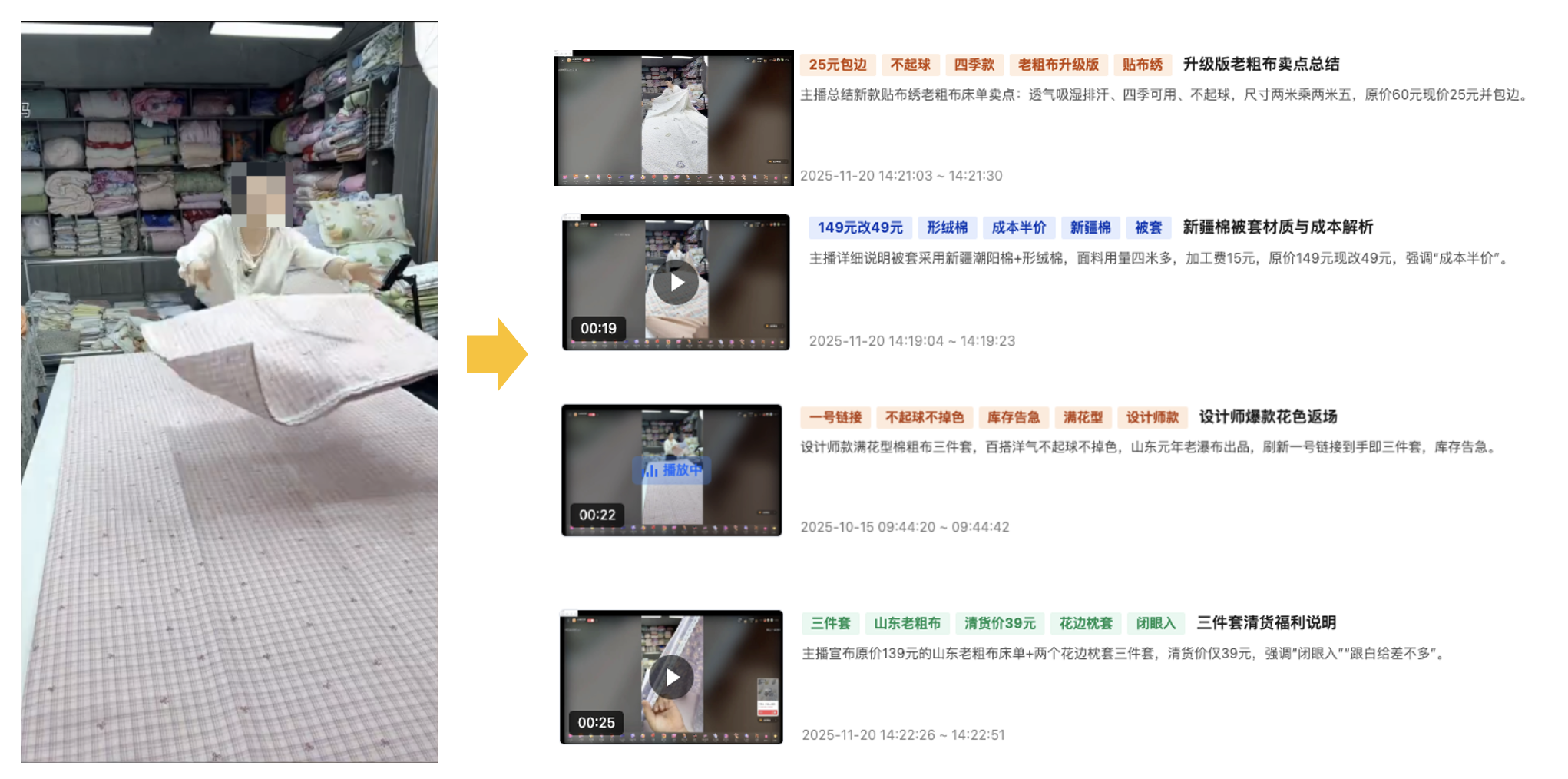 处理直播流 | 精彩集锦-直播流处理 | 基于大模型视频理解,针对直播场景进行了针对性模型优化。 | 广电新媒体直播 在线教育直播 电商带货直播 金融直播 足球篮球赛事直播 | 收取“精彩集锦-大模型版”费用。 |