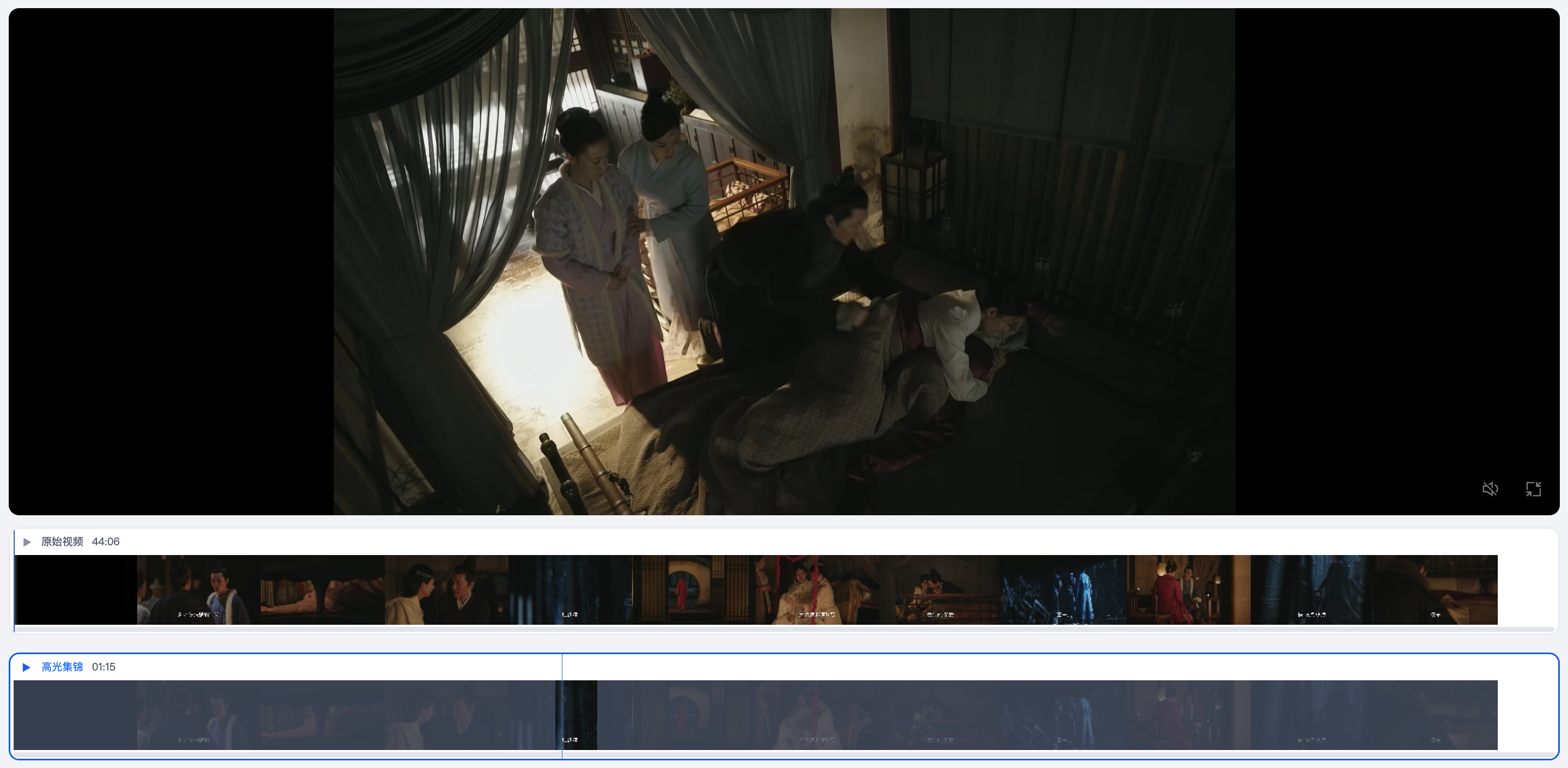 基于大模型视频理解,并针对短剧影视剧视频进行了针对性调优,可以自动提取主角出场时刻、BGM 时刻等高光片段,辅助提升后期制作的效率。