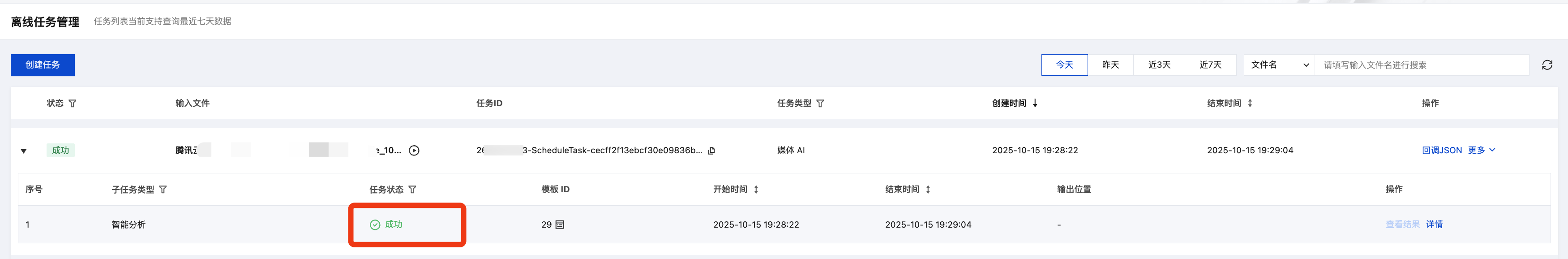 1. 您可以在控制台 任务管理 页面查看任务状态,当子任务状态为“成功”时: