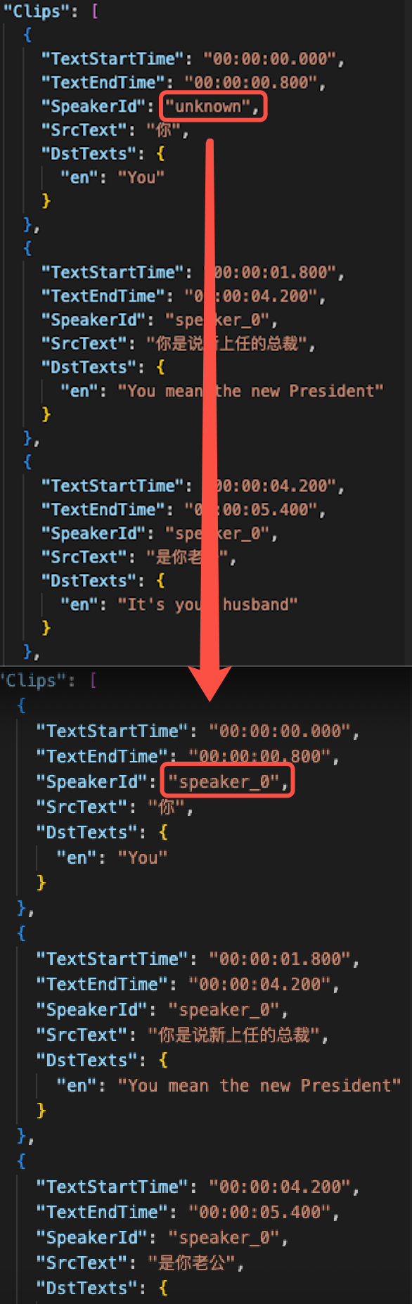修改标记不正确的说话人(SpeakerId),可以避免串音现象。