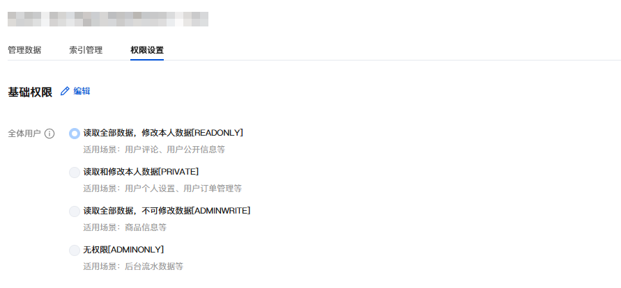 3. 权限设置可设定集合的读写权限,您可根据使用场景进行权限设定。