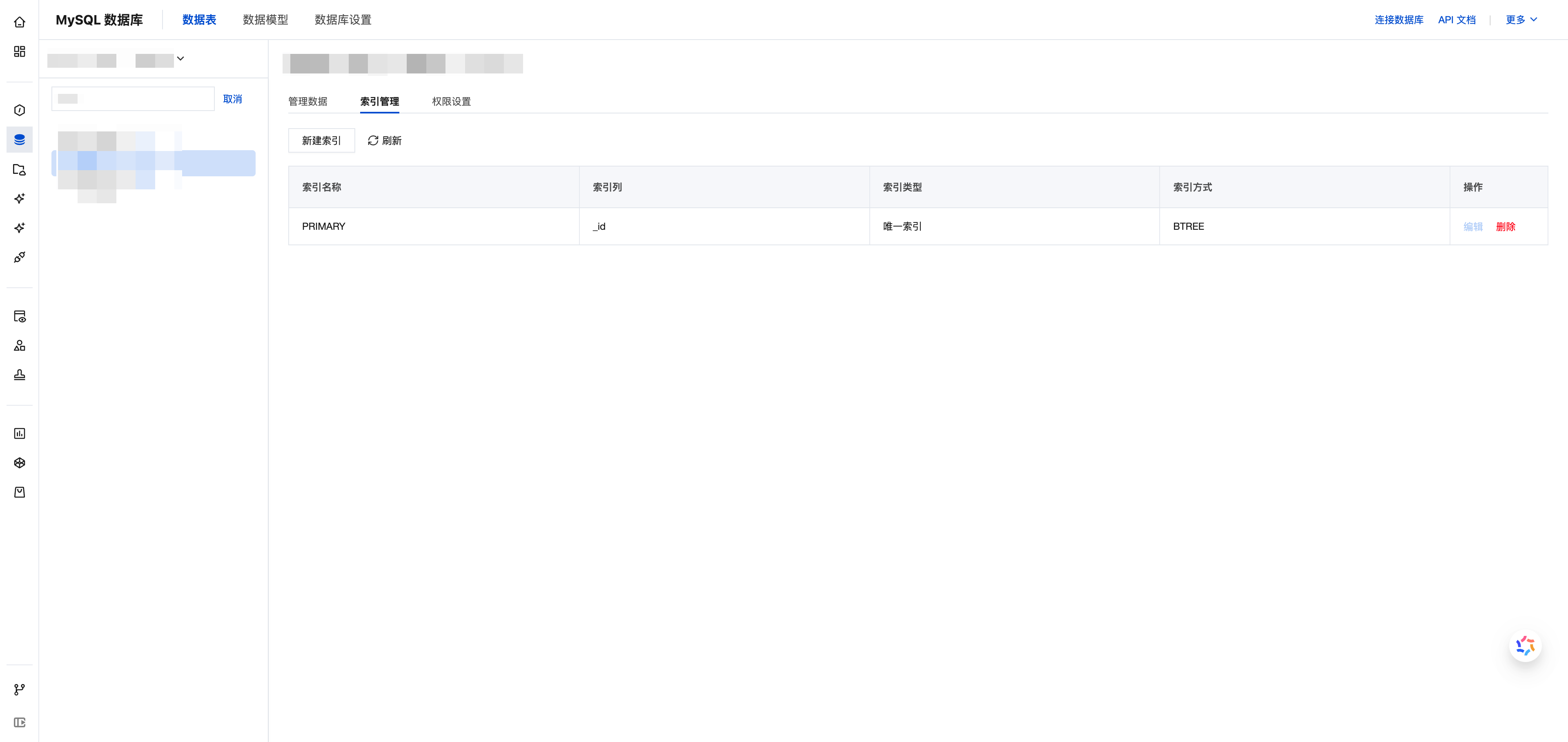 2. 进入索引管理:选择目标表,单击索引管理标签页。
