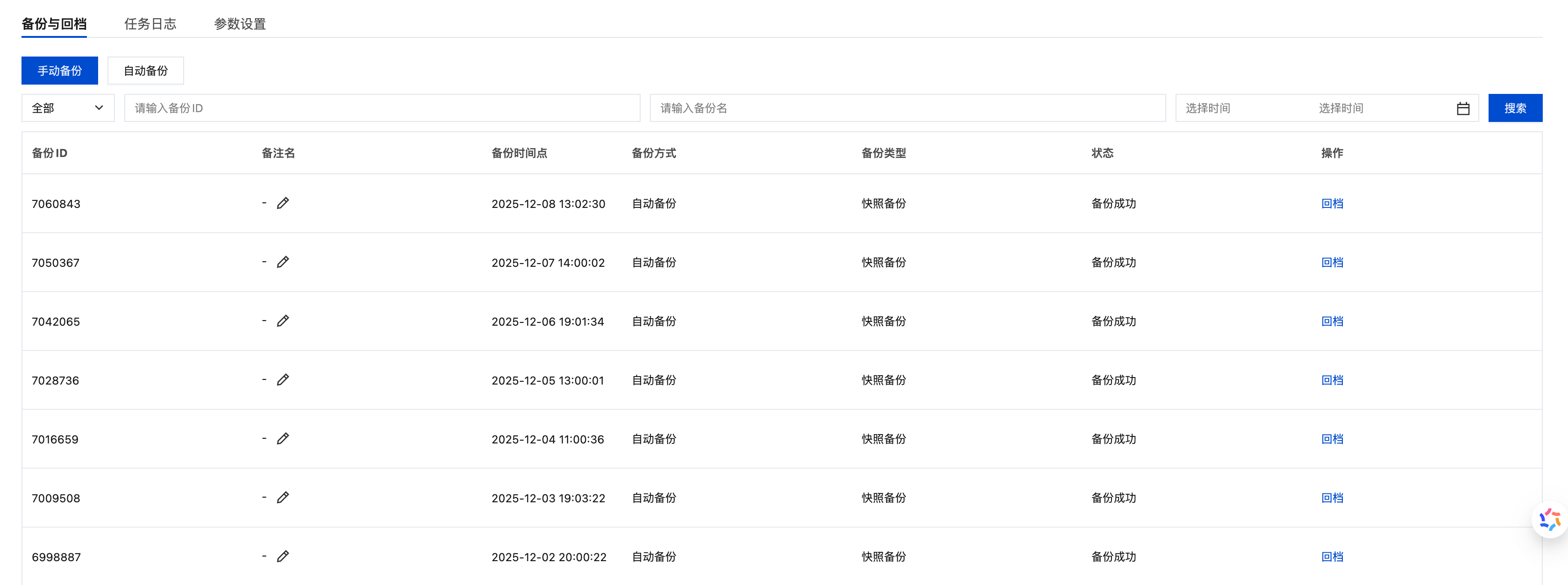 手动备份:用户可根据业务需要主动触发备份操作