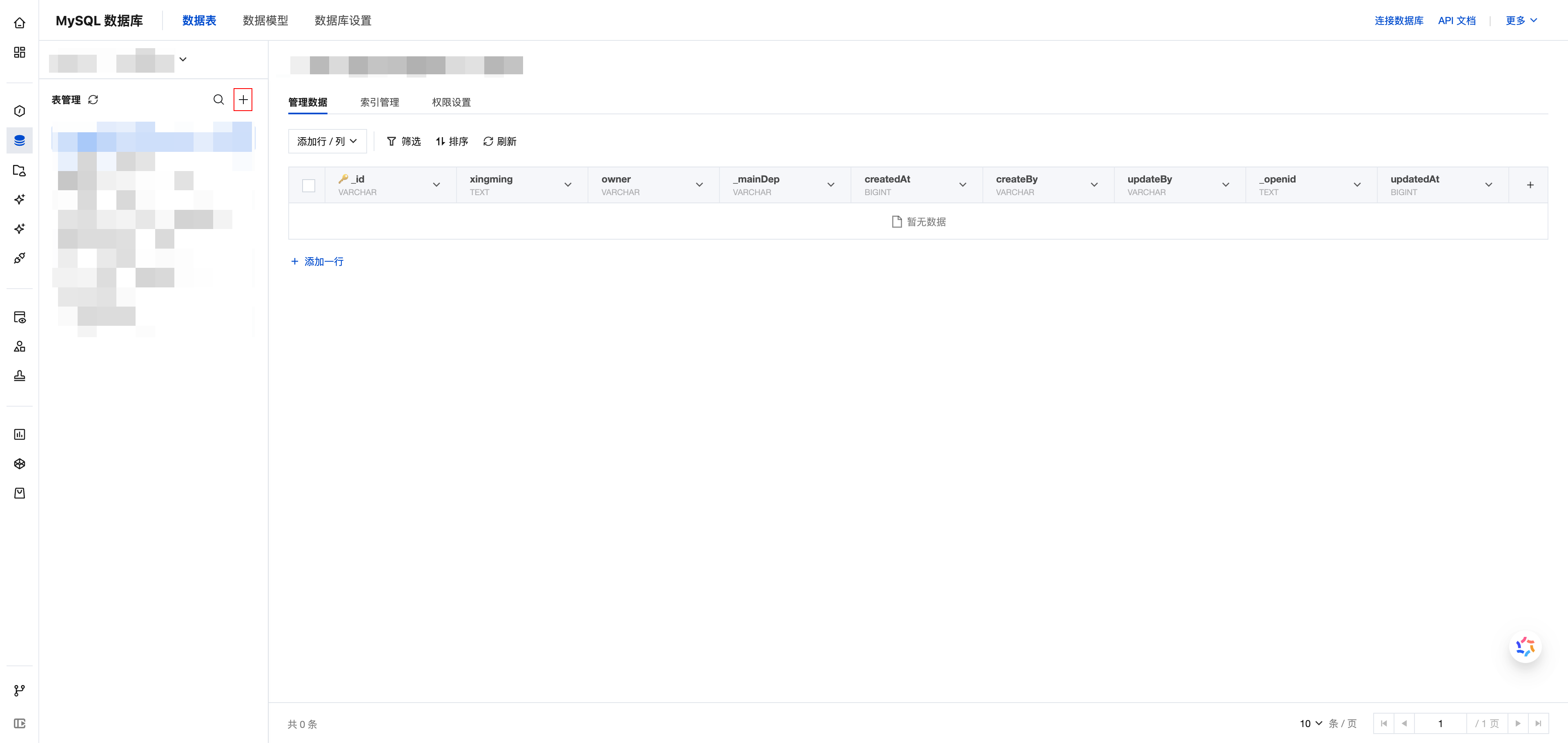 1. 进入 云开发平台 > MySQL 数据库 > 数据库表 管理页面;