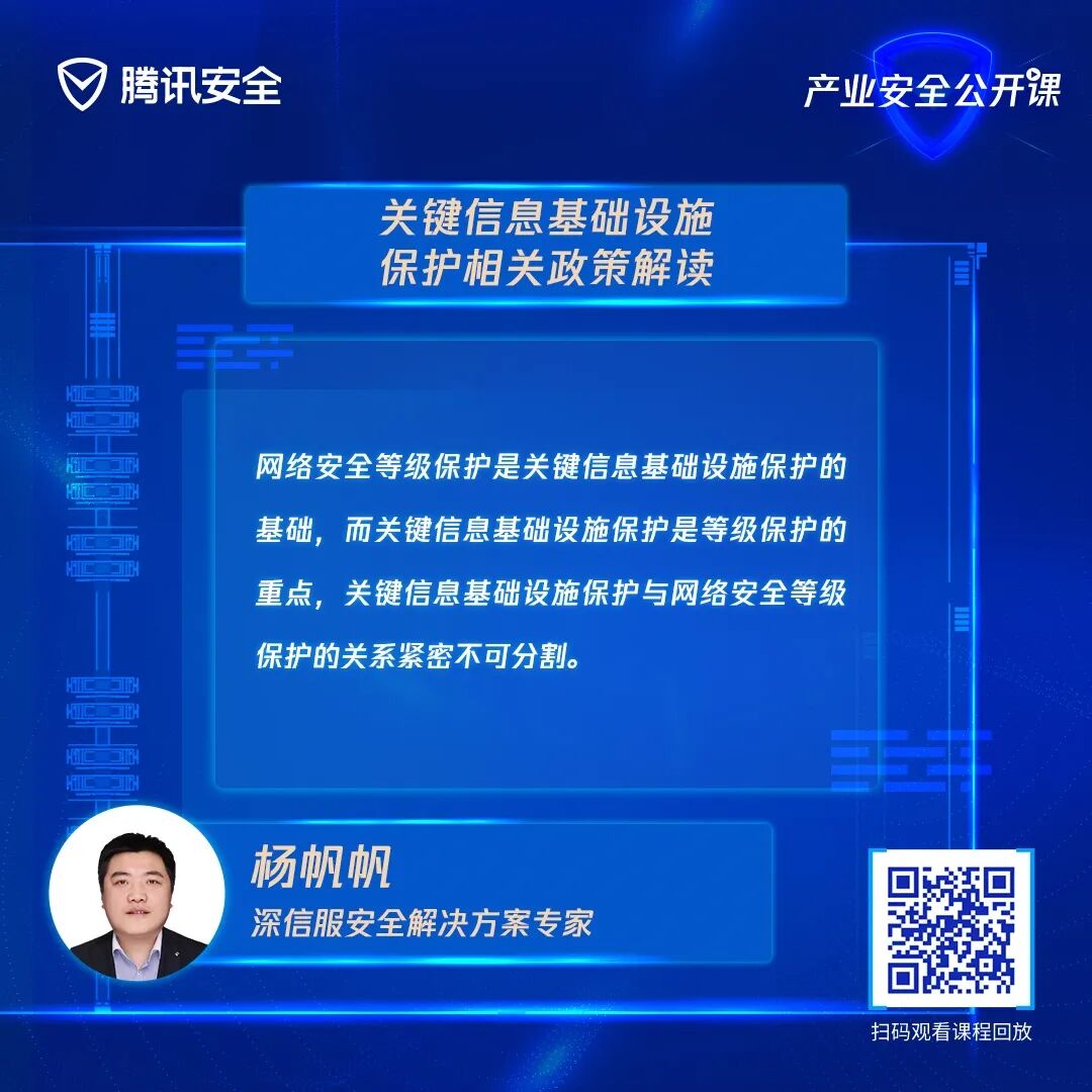 关键信息基础设施保护直接关系到国家安全、国计民生和公共利益,是等级保护的重点,关键信息基础设施保护与网络安全等级保护的关系紧密不可分割。来自深信服的安全解决方案专家杨帆帆在产业安全公开课·等保2.0专场第四课《关键信息基础设施保护相关政策解读》中,分享了深信服基于对网络安全等级保护政策和标准的研究以及等级保护领域的大量实践经验。