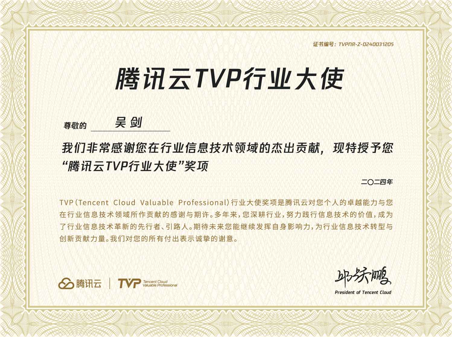 TVP行业大使荣誉